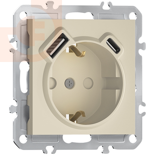 | Лицевая панель для розетки 2К+З, USB A+C со шторками, цвет матовый кремовый, серия DB (A07), пр-во Donel |
