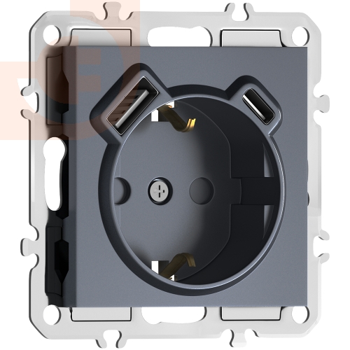Механизм электрической розетки 2К+З, винтовые зажимы, с зарядным устройством USB A+C, 5V/3A, мощность 20W, сталь, серия A07, пр-во Donel