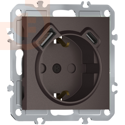 | Лицевая панель для розетки 2К+З, USB A+C со шторками, цвет мокко, серия DB (A07), пр-во Donel |