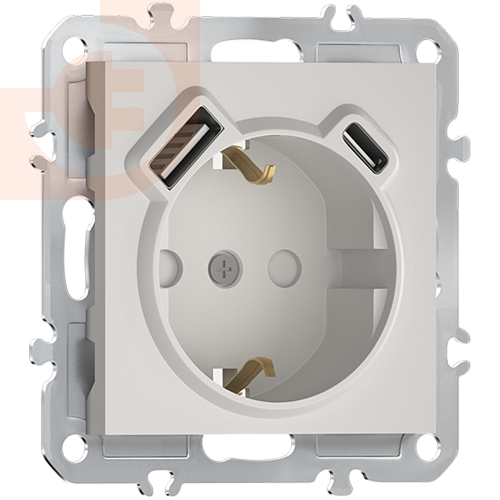 Механизм электрической розетки 2К+З, винтовые зажимы, с зарядным устройством USB A+C, 5V/3A, мощность 20W, матовый кремовый, серия A07, пр-во Donel
