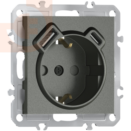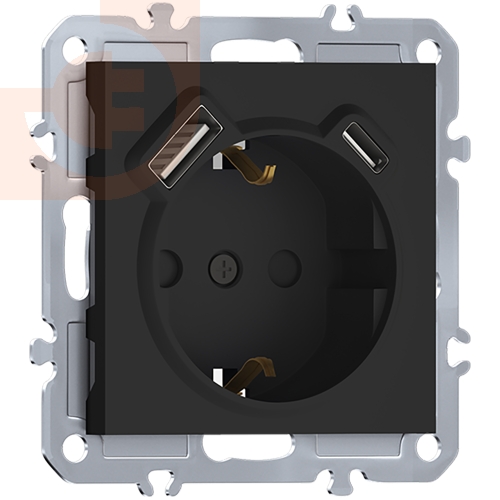 Механизм электрической розетки 2К+З, винтовые зажимы, с зарядным устройством USB A+C, 5V/3A, мощность 20W, матовый карбон, серия A07, пр-во Donel