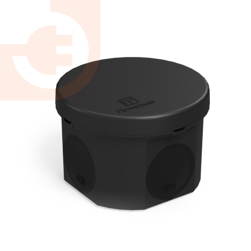Коробка распределительная накладного монтажа IP66, (подходит под прямой монтаж гвоздезабивным пистолетом), двухкомпонентная, безгалогенная (HF), круглая ø70мм, глуб.50мм с каб.вводами 4 шт, цвет чёрный, пр-во Промрукав
