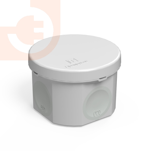Коробка распределительная накладного монтажа IP66, (подходит под прямой монтаж гвоздезабивным пистолетом), двухкомпонентная, безгалогенная (HF), круглая ø70мм, глуб.50мм с каб.вводами 4 шт, цвет серый, пр-во Промрукав