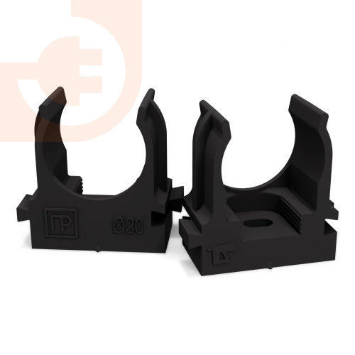 Держатель с защелкой для жестких и гофрированных труб диаметром 20 мм, цвет чёрный, пр-во Greenel
